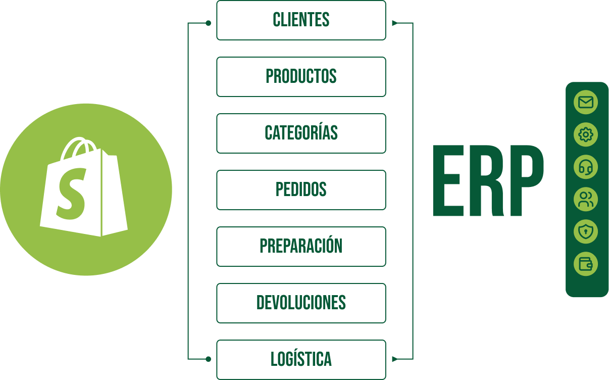 Integrar es hacer que las herramientas hablen entre sí. Es conectar el ecommerce con el ERP, con los marketplaces, el CRM con el sistema logístico y todo ello con una lógica común. Es eliminar tareas repetitivas, evitar errores manuales y construir una operativa fluida, escalable y sostenible. Estos son algunos de los sistemas que integramos habitualmente en nuestros proyectos.